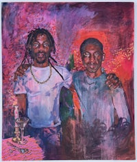 The style that I have now is really intertwined with my own journey towards grieving my father and understanding the passing of time. The man that you see with dreadlocks in most of my work is my father. I think he is one of the only faces, aside from myself, that is repetitive in my work. Most of my photo references come from old family archives and photo albums that my mom has. When my work isn’t visually connected to my family and my identity, my work is inspired by Black photography, dancehall culture, dub soundsystem culture, roots reggae, and other music.