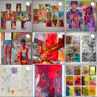 One of her standout works, A Year of Self Reflection 2, 2024, created with acrylic and graphite on canvas, exemplifies her approach to weaving personal and cultural narratives. Her vibrant, dreamlike pieces blend family history, reggae music, and the rich legacy of Black photography, offering a deeply personal lens into her journey of self-discovery. Through her work, Django not only reclaims fragmented memories but also celebrates the cultural sounds and visuals that have shaped her life.