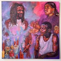 My work is really personal to my journey through understanding grief and its connection to memory. When I try to reminisce about my childhood I cannot remember much, and what I do remember is all blurred. It wasn’t until exploring family photo albums that I was able to piece together family moments that I have no recollection of. For this reason I like to paint my memory through the lens of a dream. I use vivid colors to highlight my relation to events crucial to the development of my cultural identity that I simply cannot remember. What I do remember more clearly from my childhood is reggae. Recently my work has been more focused on my connection to reggae as a whole, and its importance in my life.